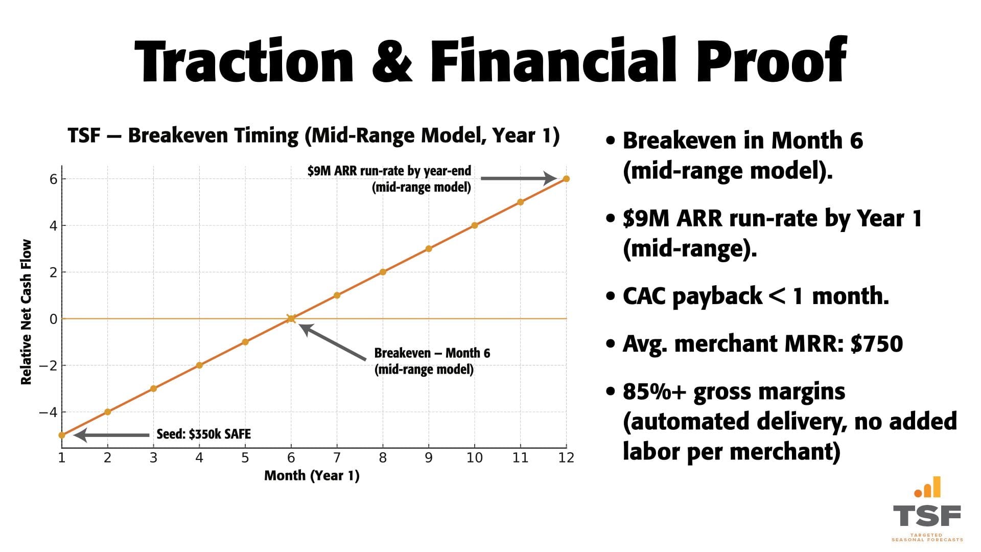 Now raising a $350k SAFE to complete launch and reach breakeven in six months.